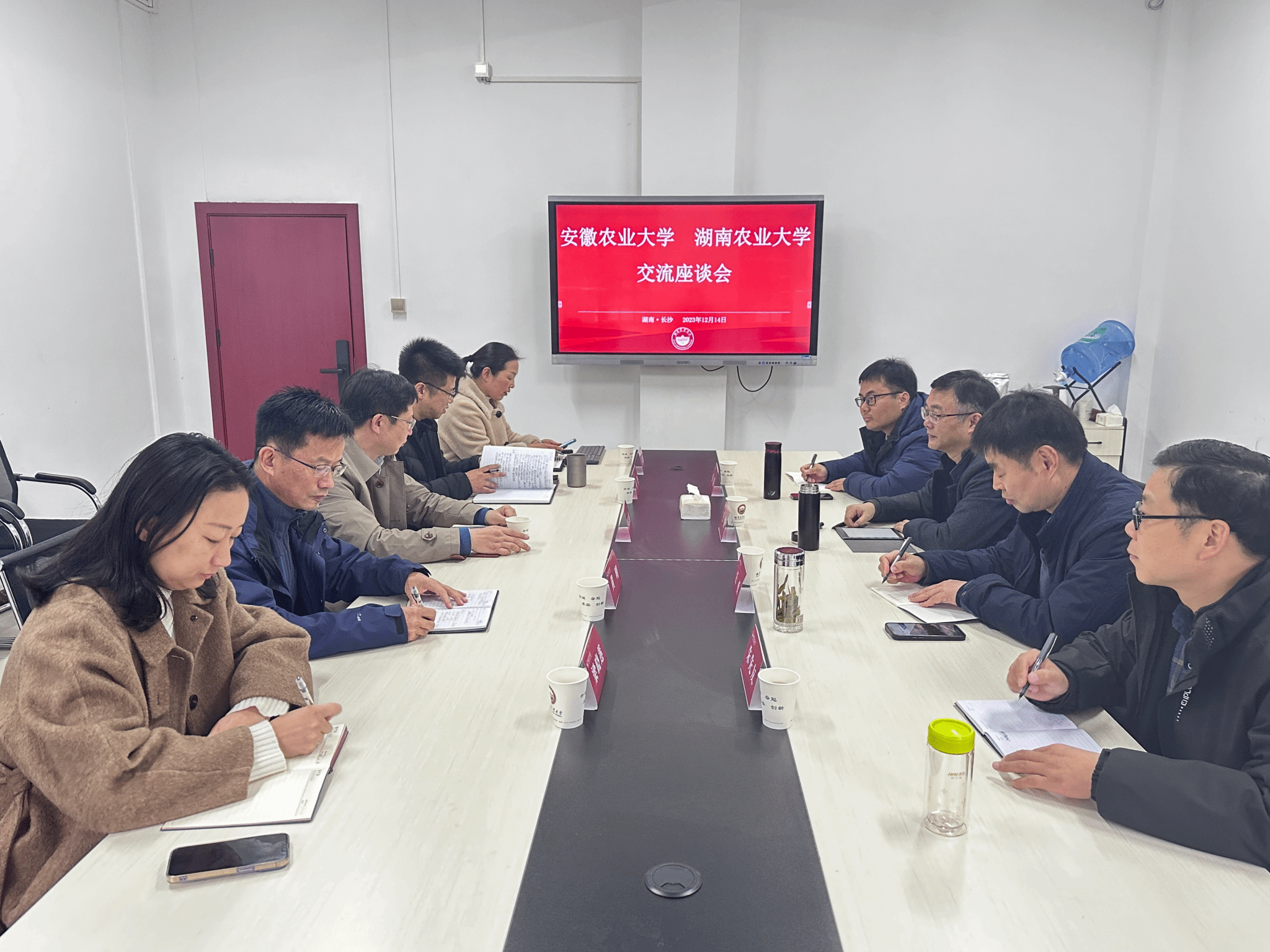 12月14日,实验室安全管理中心、生物技术中心主任王涛、副主任汪勇、国有资产管理处副处长朱先友等一行赴湖南农业大学开展工作调研,湖南农业大学资产与实验室管理处处长傅志强及相关科室负责人参加交流座谈。