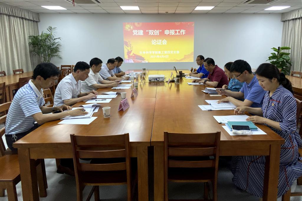 为进一步推进新时代党建示范创建和质量创优,抓好支部创建工作,64日下午,生物技术中心党支部邀请合肥工业大学资源与环境学院党委书记李强、安徽大学数学科学学院党委书记于金文、安徽中医药大学药学院党委书记胡卿、我校生命科学学院党委书记甘传鹤、组织部副部长黄庆华、宣传部副部长曹雷等对生物技术中心党支部党建“双创”工作进行专题论证评议。论证会由生命科学学院党委委员、中心主任王涛主持。